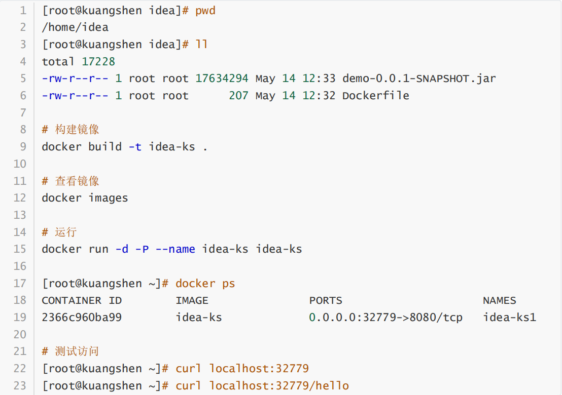 FROM java:8 # 服务器只有dockerfile和jar在同级目录 COPY *.jar /app.jar CMD ["--server.port=8080"] # 指定容器内要暴露的端口 EXPOSE 8080 ENTRYPOINT ["java","-jar","/app.jar"]